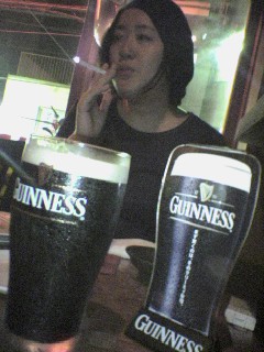 終って、やっぱり行ったのはギネスバー。ギネス越しに一服のみち〜。