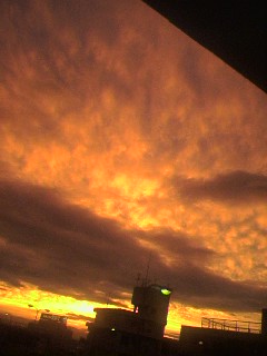今日の夕焼け、こわかたー。 性能の悪いカメラは、なんかの加減で さらに怖い写真になちゃうのー。