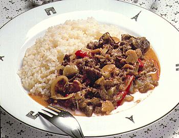 1つ目はバターライスで生クリームが入ってそうなのでビーフストロガノフ