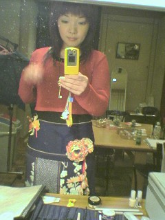 いよべさん私物の赤いゴルチェのカットソー、腰につけたコサージュもいよべさんの作品です。サイトにいって、じっくり見てみてね!ブログはこちら、、1日にとった写真が載っています。1日はコサージュをカットソーにつけましたが、3日は腰につけたので、ゴールドのペンダントを。これも、最近、アンティークの鍵を集めていると言ういよべさんの私物をお借りしました。「これであなたのハートを開けちゃうぞっ★」という台詞をステージで言わなきゃと、しぃちゃんとゲラゲラ笑いながら話していた。でも、言うの忘れた私・・・忘れてよかったような。。