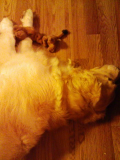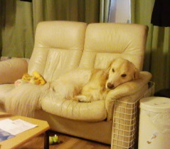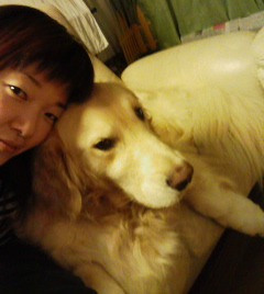 「utaite」でお借りしていた衣装を返しに、いよべさんのお宅へ。 という事はゴールデンのジェリーちゃんですよ、 このブログでも有名〜〜〜。 順に、お気にいりのぬいぐるみを抱っこして寝るジェリー。「お父さんのゴロ寝」風なジェリー。仲良しこよしー。